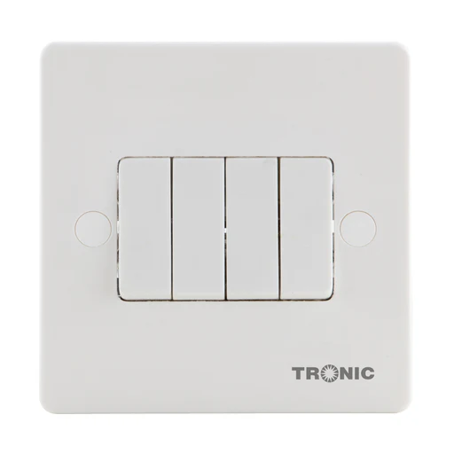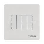 4 Gang 2 Way Switch Tronic – A versatile and durable switch that lets you control four different lights or appliances from two locations. Designed with a sleek, modern look, it offers both convenience and style for any interior.