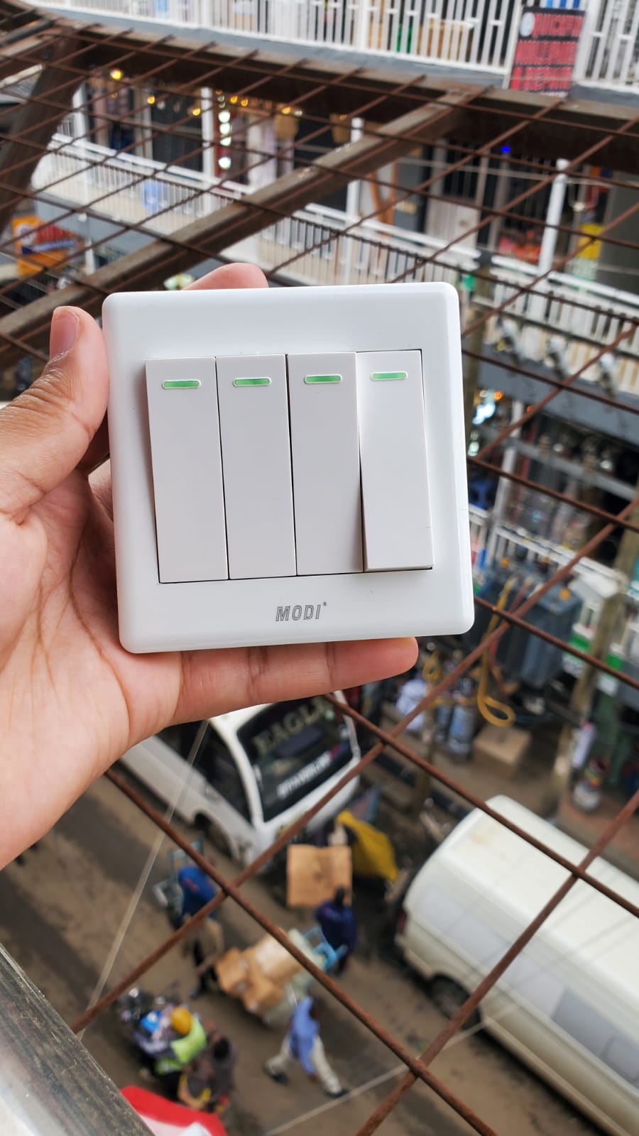 A 4 Gang 2 Way Switch allows you to control four separate lights from two different locations, providing convenient and flexible lighting control for larger spaces such as living rooms, hallways, offices, and commercial areas. Designed with a sleek finish and made from high-quality, durable materials, it ensures smooth operation, long-lasting performance, and easy installation while complementing modern interior designs.