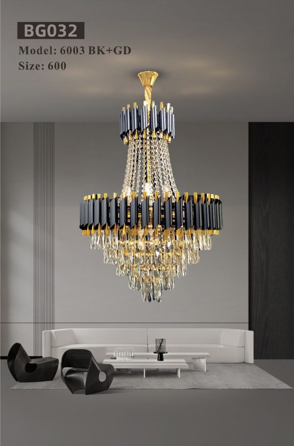 The BG032 chandelier is a bold and elegant lighting fixture built to be the centerpiece of any room. With a 600 mm size, it is perfectly suited for large living rooms, dining areas, or entryways, where it adds both grandeur and warm illumination.