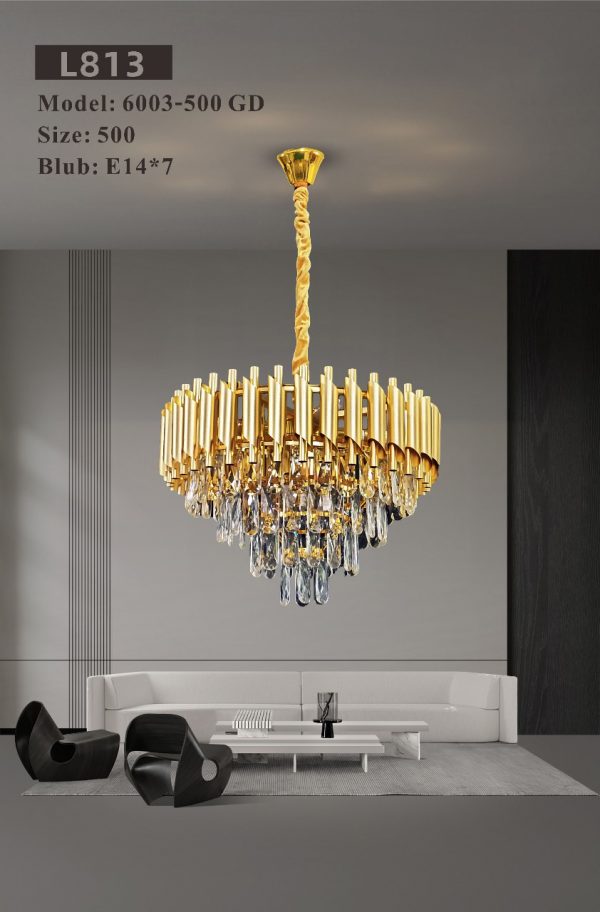 Make a bold statement with the L813 chandelier, designed to bring luxury and brilliance into your home. With its 500mm size, elegant gold finish, and sparkling crystal detailing, this piece combines modern style with timeless sophistication. Perfect for dining rooms, lounges, or bedrooms, it adds a warm golden glow that enhances any interior décor. At just KES 9,500, the L813 chandelier offers exceptional value for those who want durability, elegance, and a touch of glamour in their living space.